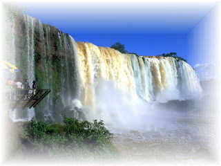 南米大陸のアルゼンチン、ブラジルの二国にまたがる、世界三大瀑布の一つ。イグアス川の下流にある。この滝を含むブラジルのイグアス国立公園とアルゼンチンのイグアス国立公園は、ともにユネスコ世界遺産に登録されている。最大落差80メートル以上。270以上の滝がおよそ3qにわたって連なる世界最大の瀑布。「悪魔の喉笛」(Garganta